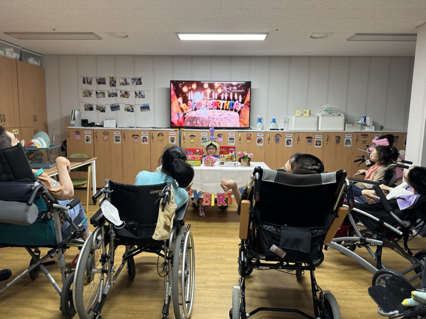 이번 7월 생일자를 위한 생일잔치를 진행하였습니다. 다 같이 한 자리에 모여서 축하와 선물을 전해주는 시간을 가진 후